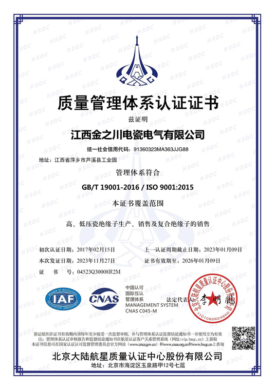 江西金之川電瓷電氣有限公司原名萍鄉市金川成套瓷廠,原屬獨資企業,創建于2002年,系架空線路、電力電器用瓷絕緣子專業生產廠家。根據公司發展需要,于2017年改制成立了股份有限公司,公司通過多方考察最終落戶蘆溪縣工業園區,于2019年整體搬遷至交通便利的江西省萍鄉市蘆溪縣工業產業園。公司現有占地面積35000平方米,生產廠房面積14000平方米,員工百余名,其中專業技術人員35人。公司具有完整的生產體系,并已通過ISO 9001:2015質量管理體系、ISO 14001:2015環境管理體系、ISO 45001:2018職業健康安全管理體系認證;能源管理體...